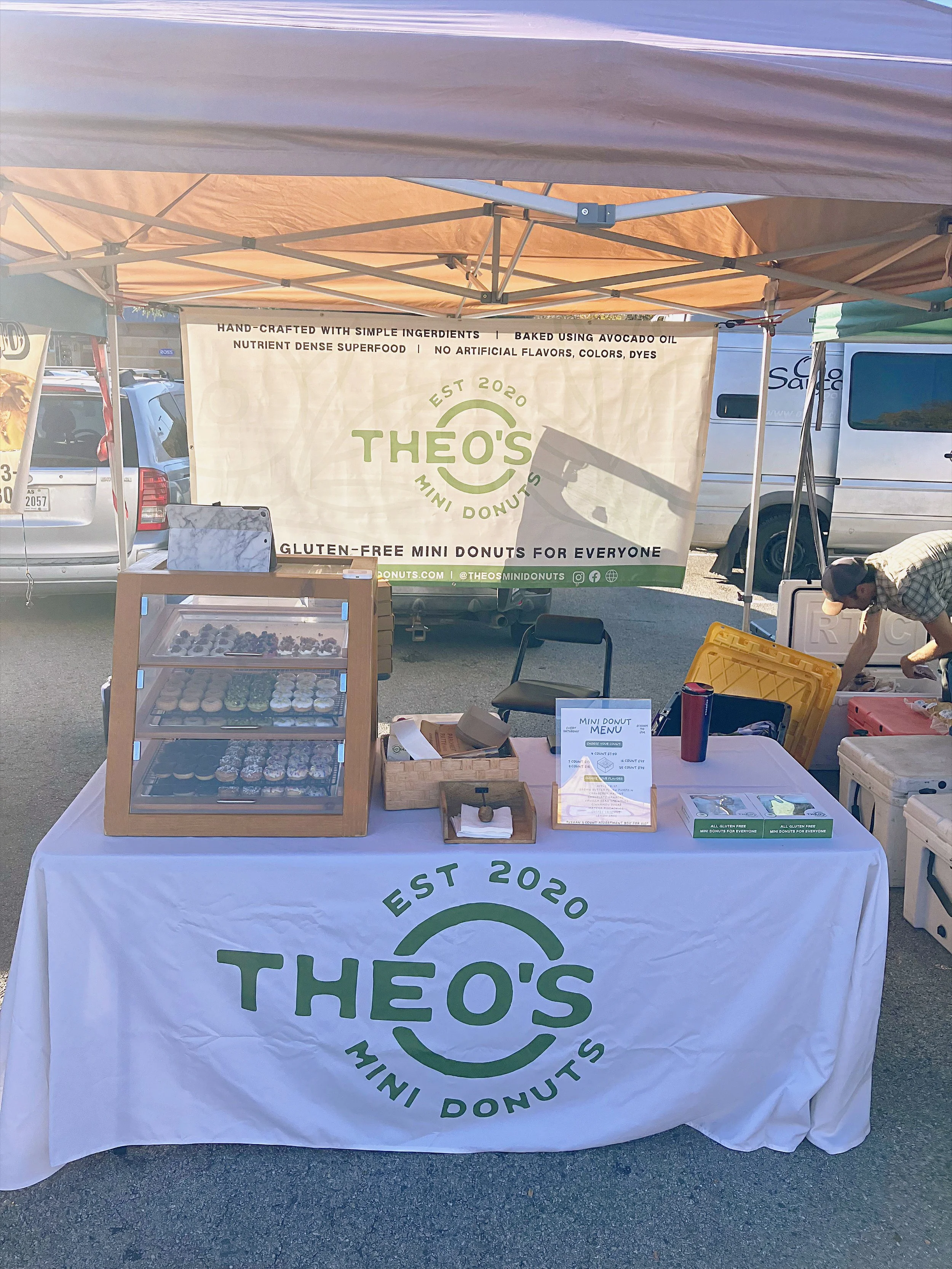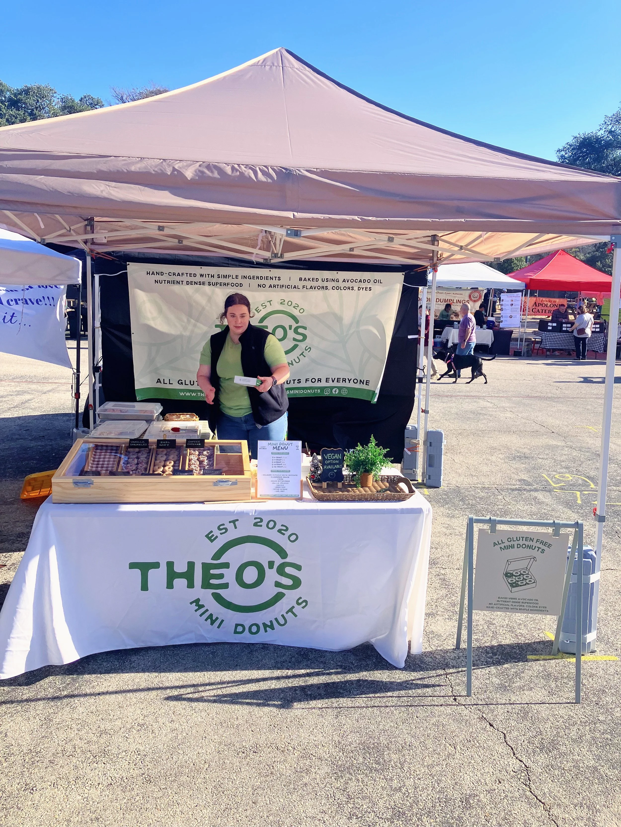 You can find “Theo’s Mini Donuts” along with Over 60 unique vendors at Georgetowns local farmers market for all your gluten free mini donuts cravings!